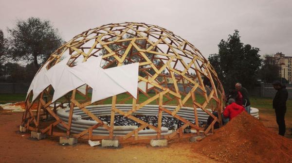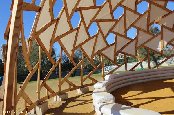 A partir de las experiencias acumuladas en el taller infantil de geometrías geodésicas se empezó a planificar el montaje de una segunda estructura, esta vez en madera.